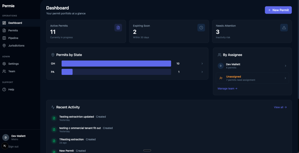 Permie replaces the calling around with a single dashboard that shows you everything across every PM, jurisdiction, and state.